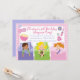 Comece sua festa de aniversário com o nosso convite de aniversário de pijama, com um grupo de 3 meninas em bolsas adormecidas com pipoca, esmalte, batom e corações e flores dispostos em um fundo de listras cor-de-rosa com um fundo roxo. Bonito para uma doce festa de aniversario de meninas de adolescente. Visite o nosso compro para ver outros convites de aniversário modernos de na moda e para agradecer notas, autocolantes e carimbos de correio. © designs Babystar