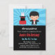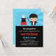 Um convite para corresponder à sua festa de aniversário de espetáculos mágicos! Ele tem um garotinho fofo em uma roupa mágica de jaqueta de casaco preto e arco vermelho com uma varinha mágica na mão. ele está executando o truque mágico popular de fazer o coelho branco que aparece do chapéu mágico. Excelente para festas onde você contrata mágicos ou se o aniversariante gosta de fazer truques de mágica. Personalize facilmente com os detalhes do seu partido.