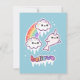 Narrador mágico super giro com nuvens de doces arco-íris. Personalize a parte de trás com as informações da sua festa.