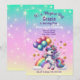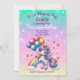 Balões unicórnios lindos e adoráveis unicórnios unicórnios unicórnio temem convites de aniversário para a festa de aniversário das meninas. Fundo pastel com estrelas, balões bonitos perfeitos para aquele dia especial.