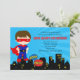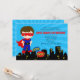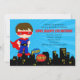 Os super-heróis bonitos fazem convites para meninos com super-rapaz e passado de sol azul.