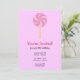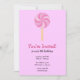 Esses Convites de aniversário pirulito apresentam um pirulito / folly cor-de-rosa em um fundo de rosa claro. Clique em "Personalizar!" para mudar a cor de fundo para o que você quiser.