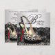 Sapato elegante vermelho de salto alto, renda preta e convites de festa de aniversário com estampa de leopardo. Este convite de festa de aniversário de leopardo vermelho é facilmente personalizado para o seu evento, bastando escolher o botão "Personalize!" para começar a adicionar os detalhes do evento, estilo de fonte, tamanho e cor da fonte e texto. Por favor, note que todos os adesivos, cartões e desenhos de convites que você encontrará no Zazzle são gráficos impressos sem pedras, laços, relevos, ou peças ou partes adicionadas.