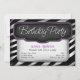 Convites "Puffy" com sotaques de design prateado e roxo. #zebraprint #aniversário