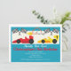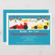 Comece sua Festa de aniversário correndo bem com nosso convite de aniversário de carro de corrida com um carro de corrida amarelo e carro de corrida amarelo com bandeiras de corrida marcadas em um fundo azul. Totalmente personalizável por você com suas informações. ©Riefka Design