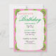Bonito convite de aniversário rosa e verde que você pode personalizar e fazer seu próprio. Salve o convite de aniversário de data, modelo.