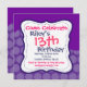 Este convite é mostrado como um convite de aniversário de 13, mas esses modelos de convites de festas de aniversário fofos podem ser facilmente usados para crianças ou adultos, ou podem ser personalizados para qualquer tipo de festa ou evento. Basta preencher o texto com os detalhes do seu próprio partido. Se quiser alterar a cor do texto ou reorganizar as coisas, basta usar o botão laranja "Personalizar". O verso do convite tem o mesmo padrão colorido que o lado frontal.
