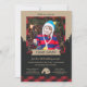 Convites de aniversário de acampamento de flanela de xadrez de búfalo, castanho-branco, preto e vermelho, com espaço para uma foto do garoto de aniversário! Apresentando uma tenda, árvores e um padrão animal no dorso com um fundo kraft texturizado marrom e preto.