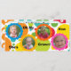 Convites de aniversário de Festa Divertida com círculos brilhantes multicoloridos e padrões de flores e áreas que você pode personalizar facilmente com quatro fotos e suas informações sobre festas!