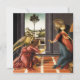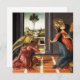 Convites de Anunciação Botticelli. A pintura de Tempera no painel de 1490. Sandro Botticelli foi um dos pintores religiosos excelentes do renascimento precoce. Anunciação é uma de suas pinturas mais comoventes e mostra o anjo Gabriel anunciando o nascimento do Cristo da Virgem Maria. O anjo tem asas ouros e veste um manto vermelho macio com capas douradas e contém um longo caule de lírios. Um presente bonito para fãs de Botticelli, de Arte Renascentista Precoce e de pinturas cristãs.