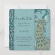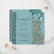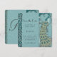 Convites de Casamento em Azul, Turquesa e Água-Marinha com Pavão Vintage Art Nouveau / Art Deco para Salvar a Data