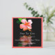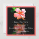Bela fotografia de uma flor de hibisco cor de pêssego, em um fundo preto, com uma moldura de pêssego, dá a este anúncio de salvar a data um visual muito elegante. Personalize o texto para atender às suas necessidades. É necessário porte extra para este tamanho de cartão.