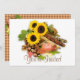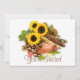 Girassóis, Milho Indiano mais nozes e folhas de outono em cores de outono rodeiam uma vela neste arranjo de feriado. Bom para convites para qualquer função ou festa no final do ano.