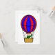 Andar num balão de ar quente é muito divertido. Você está flutuando. Este design apresenta um balão de ar quente com aparência de excelente. O balão em si é vermelho e azul. No cesto está uma pessoa solitária que está sorrindo e acenando. Este design de balão de ar quente parece excelente nestes convites