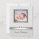 Renda branca elegante e moldura de fotografia prateada para convite de batismo ou batizado de bebê. Este lindo convite de batismo fotográfico cinza prateado e branco é facilmente personalizado para o seu evento, bastando clicar no botão "Personalize!" para começar a adicionar sua foto e detalhes do evento, estilo de letra, tamanho e cor da fonte e texto. Por favor, note que todos os desenhos de convite que você encontrará no Zazzle são gráficos impressos sem joias, laços, relevos, rebaixos ou peças ou partes adicionadas.