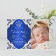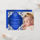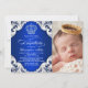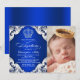 Convite de batismo de príncipe com bela coroa de diamante e escrita elegante em um fundo azul real e branco redemoinho. Este convite de batismo de príncipe azul elegante é facilmente personalizado para o seu evento, basta adicionar seus detalhes no estilo de letra e cor, e na redação de sua escolha. Este é um design impresso sem diamantes reais, brilho, etc.