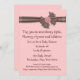 Convite para chás de fraldas cor-de-rosa e castanho. Arco marrom escuro com botão cor-de-rosa no fundo rosa.