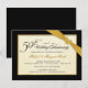 Crie seus próprios convites personalizados de aniversário de 50 anos de casamento -- Aparência de pergaminho bege com fita dourada impressa e coração de pedra preciosa dourada. Tipografia clássica com aparência de gravada e letras em estilo swash vintage -- Luxo elegante e acessível, e exclusivamente personalizado para você! Basta adicionar os nomes, data e detalhes para a celebração deste marco especial de aniversário. **OBSERVAÇÃO: Todos os elementos deste design fazem parte da imagem IMPRSSSA -- a fita, o broche de joias e a moldura NÃO são em relevo ou apresentados como adornos reais. Tamanho adequado para cartões de convite pequenos. Clique em "Personalizar" para alterar o tamanho, opções de papel ou escolhas de fonte. Outros tamanhos e estilos disponíveis na galeria. © Teri Francis. Conjuntos coordenados com selos e cartões de agradecimento disponíveis mediante solicitação.