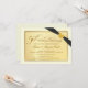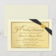 Crie seus próprios convites personalizados para a festa de aniversário de 50 anos de casamento -- Borda bege marfim lisa sobre moldura dourada com aspecto metálico com fita de veludo preto [impressa] e coração de pedra preciosa dourada. Tipografia clássica com aspecto de gravada com letras em estilo swash vintage e ornadas -- Luxo elegante e acessível, e customizado exclusivamente para você! Basta adicionar os nomes, data e detalhes para a celebração do seu marco de aniversário especial. **OBSERVAÇÃO: Todos os elementos deste design fazem parte da imagem IMPRESSA -- a fita, o broche de joias e a moldura NÃO são em relevo, nem apresentados como elementos reais. Tamanho para cartões de convite pequenos. Clique em "Personalizar" para alterar o tamanho, opções de papel ou escolhas de fonte. Outros tamanhos e estilos disponíveis na galeria. © Teri Francis. Conjuntos coordenados com