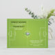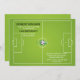 Uma vista de pássaro de um campo de futebol verde com uma bola de futebol no centro. A bola pode ser ampliada ou menor (+-) ou arrastada para qualquer local do convite. Um design unisexo para todas as idades.