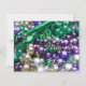 Fotografia de pulseiras coloridas de Carnaval. As cores do Mardi Gras (dourado, verde, roxo) estão presentes numa grande pulseira de lagostim verde enquadrando a foto. A frente do convite destaca "Mardi Gras". O verso do convite tem "Laissez les bon temps rouler!" como uma saudação e espaço para você adicionar detalhes personalizados do convite de Carnaval para sua festa. Todas as palavras no cartão podem ser personalizadas, conforme necessário.
