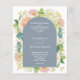 Os convites para casamento tudo em um azul empoeirados mostram seus detalhes na frente em cartazes chicos com lindas flores de aquarela - hífenes brancas e verdes, rosas cor-de-rosa e creme, margaridas, pequenos caules e folhas - e um Código QR para o seu site de casamento no verso. Impresso no barato, 4,5" x 5,6" em papel de 110 lb. **ENVELOPES BRANCOS são um custo adicional. O Serviço de Design ao Vivo pode ajudá-lo com o layout do seu design ou cores, se necessário. CORRESPONDENDO a itens na nossa loja.