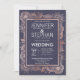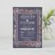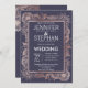 Falso moderno e elegante imprimiu flores rosa de ouro em azul marinho, convites para casamento. Este design clássico e sofisticado é perfeito para o casal de competição de tendências e na moda. Personalize com sua própria mensagem na frente, assim como um monograma personalizado inicial no verso. Todas as impressão de fotos.