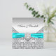 Convite de casamento diamante azul turquesa e prata elegante.