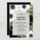 Aquarela de elegantes flores de anêmona preto e branco e folhas sobre fundo preto, detalhes de sua cerimônia de casamento em caracteres chicos sobre um indefinido branco transparente. Mude o fundo preto para qualquer cor para corresponder ao seu tema de casamento. COORDENANDO itens disponíveis em nossa loja para completar seu conjunto de convites.