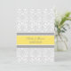 Cartões de convite de casamento em amarelo-canário brilhante elegante e romântico, cinzas e cor damasco floral clássica branca. Personalize esses convites com seus detalhes de casamento. Disponível em produtos correspondentes para todas as suas necessidades de casamento.