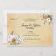 Convite de casamento cor de ferrugem e abóbora branca de outono. Flores brancas e enferrujadas. Faça do seu grande dia algo especial com abóboras brancas para um casamento de outono.