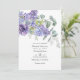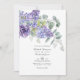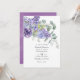 Convite de casamento moderno com folhas de eucalipto e plantas suculentas misturadas com flores em tons de lilás pastel, roxo e violeta. Ideal para qualquer tema ou casamento de jardim. O código QR no verso direciona para o site do seu casamento onde as pessoas podem saber mais e responder.