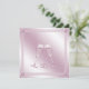 Este convite de casamento civil deslumbrante para casais gays ou lésbicas tem um fundo com efeito metálico rosa suave com dois copos de champanhe rosa pálido cheios de vinho espumante e borbulhante e dois anéis de casamento rosa. Linhas duplas se sobrepõem para formar uma borda para o convite e estas são "fixadas" nos cantos por diamantes rosa falsos.