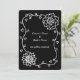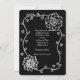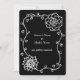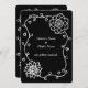Uma borda de flor branca em preto cria um design impressionante nestes convites de casamento modernos. Há duas flores brancas diferentes em cantos diagonais, com corações como folhas, conectando as flores. O texto do casamento é facilmente personalizado nos formulários de modelo. O design está em ambos os lados. Obrigado por comprar na CherylsArt no Zazzle.