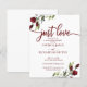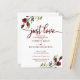 Convites de casamento casuais florais vermelhos com caligrafia chic. Fácil de personalizar com seus detalhes.