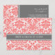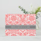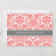 Cartões de convite de casamento em cinzas de carvão elegantes e contemporâneas, cor-de-rosa cor de pêssego, e padrão clássico e chic floral damask vintage. Personalize estes convites com os detalhes do seu casamento. Disponível em produtos correspondentes para todas as suas necessidades de casamento.