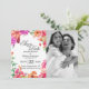Cartão de convite de casamento elegante, artístico e bonito em cor-de-rosa, laranja e roxo, com pintura em aquarela de flores de jardim. Este design clássico e sofisticado é perfeito para o casal que se casa moderno e elegante. Personalize com sua própria mensagem na frente, bem como um monograma inicial personalizado no verso. Todo o design de impressão de foto.