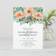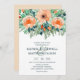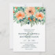 Elegante aquarela de flores em tons de pêssego a laranja aparada com lágrima a folha verde de jade com seus detalhes de cerimônia de casamento em letras chic teal abaixo. Uma escolha moderna, mas simples, para qualquer convite de casamento. Mude o fundo branco para qualquer cor para corresponder ao tema do casamento. **TIP: Clique no botão PERSONALIZAR para adicionar, excluir, mover e alinhar informações, alterar as fontes, as cores da fonte e a cor do plano de fundo. CORRESPONDENDO a itens na nossa loja.