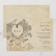 Convites de casamento de camping com uma árvore em forma de coração e as iniciais da noiva e do noivo dentro do coração. Ilustração fofa de uma barraca e placa de camping. Perfeito para o seu casamento no acampamento na floresta. Obtenha os cartões de resposta e selos de amor correspondentes.