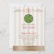 Bonitas e fantasiosas, doces e românticas chamadas de casamento com uma bola de beijo e pomandro decorado com folhas de conchas festivas, bagas brancas e ornamentos de ouro pendurados com um arco vermelho. O pergaminho Bonito floresce e um fundo listrado de creme completa este Natal e/ou o aspecto temático do Natal. Trabalho de arte © Chrissy H. Estúdios, LLC. Todos os direitos reservados.