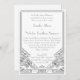 Um convite de casamento ousado e elegante, ao estilo vintage, com um tema "Gatsby Excelente" dos anos 20 em tons brancos e prateados. Um fundo branco destaca a intrincada borda geométrica, estilo Art Deco, em tons de cinza prateados. Foram selecionadas fontes decorativas de estilo de período para o seu texto de evento. Os nomes da noiva e do noivo são realçados usando uma fonte de cor de cinza prateada contrastante. Selecione o tipo de papel desejado para o efeito cheio.