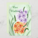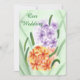 Personalize facilmente esta bonito pintura aquosa de flores de hyacinto roxa e laranja para personalizar seus convites de casamento. Uma pintura aquosa de hífenes é sobreposta a um fundo de aquarela macia. As flores também são impressas em versão menor no verso. O texto é fácil de personalizar nos formulários modelo. A pintura é de CherylsArt.