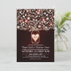 Belo convite para o casamento vermelho com cheio de jarro de pedras de flores, folhas, ramos de árvores e corações amorosos brilhantes. Convidado casual perfeito para seu casamento rústico com jarras de pedras florais.