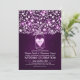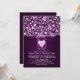 Bonito convite para casamentos vintage com cheio de jarro de pedras de flores roxas, folhas, ramos de árvores e corações amorosos brilhantes. Convidado casual perfeito para seu casamento rústico com jarras de pedras florais.