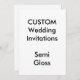 Convites personalizados de casamento SEMI GLOSS de 5"x7" com envelope. Espessura de 12,5 pt/Peso de 110 lb, semirbrilho branco, 50% reciclado, feita na Itália. Grande economia de desconto de compra múltipla (comprar em massa) em convites. 8 opções de tamanho e forma de convite. 12 opções de tipo de papel. Os Favoritos de Casamento Personalizados armazenam para essências personalizadas e personalizáveis e presentes listados para seu uso em casamentos e celebrações relacionadas a casamento.