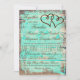 Convidações de casamento para tipografia russa única com dois corações entrelaçados no canto superior de um aqua angustiado e design de fundo de madeira de celeiro. Estas seriam excelentes para um casamento de praia rústico ou para um casamento de campo usando aqua color. O mesmo design de dois corações e madeira de celeiro também está no fundo. O tipo de letra é uma combinação fofa de fontes para um estilo de tipografia. Estes são excelentes para o país rústico e casamentos ocidentais.
