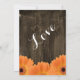 Convites de casamento de madeira rústicos das margaridas alaranjadas do país em um fundo escuro da madeira do celeiro. Um estilo moderno da rotulação da tipografia do divertimento. Estes são perfeitos para um casamento rústico do país.