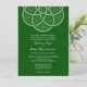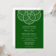 Esses convites de casamento de nó celta verde escuro apresentam um design de nó celta branco e verde e um texto personalizável branco. As placas RSVP Correspondem Abaixo.