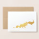 Foil De Ouro Real Penas De Tipografia Convites De Casamento. Folha Real na Frente e Trás com Penas Boho e Padrões Florais e Penas Pancadas Pancadas de Cor do Cheio Convites de Casamento de Dentro.