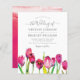 Convites de primavera de verão de orçamento com um simples fundo branco, um bonito display floral de tulipa de água cor rosa e um elegante modelo de casamento para você mudar para o seu.
